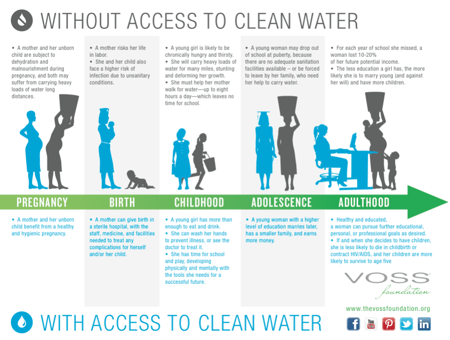 On an average, women spend more time than men collecting, storing and protecting their water source. This takes their time away from education, careers and contributions of other kinds to their households, and ultimately to society and the economy. In just one day, 200 million work hours are consumed as women collect water for their families. This has graver consequences for the girls, preventing them from attending school or participating in other productive activities. Some women have to walk about three miles to collect water on average in not only the rural or desert states but also in the towns and urban slums. Collecting water can also be dangerous, especially for girls and women, who live in remote or war-stricken areas under the threat of abuse or attacks. Preventing access to water has been a weapon in wars, making women even more vulnerable.