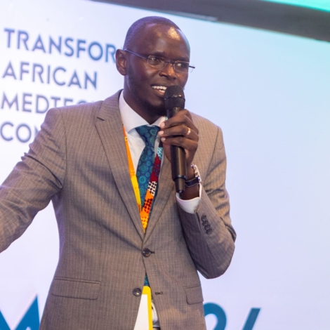 Dr. Stanley Aruyaru speaks at the Transforming African MedTech Conference in Nairobi, Kenya, in September 2024. Photo: Kimani Chege for E4C