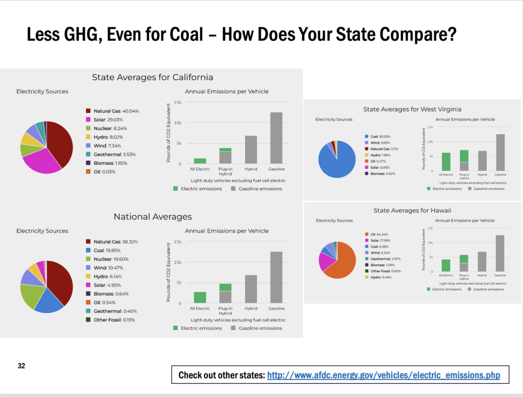“You can see that an electric vehicle charged in West Virginia (which has a coal-dominated electricity mix) still produces a lot less greenhouse gases than a gasoline vehicle.”