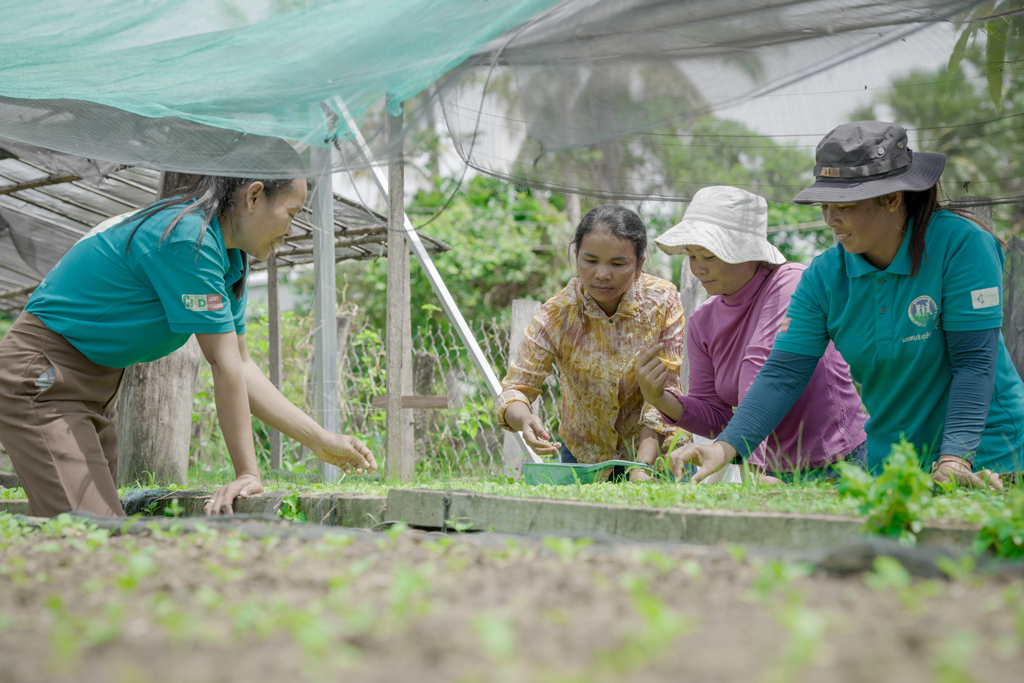 - Commune Agriculture Officers are teaching members of the Eco Farm cooperative climate-resilient farming techniques and business skills to tap into premium markets for their vegetables. Photo: Pisey Khun / FAO