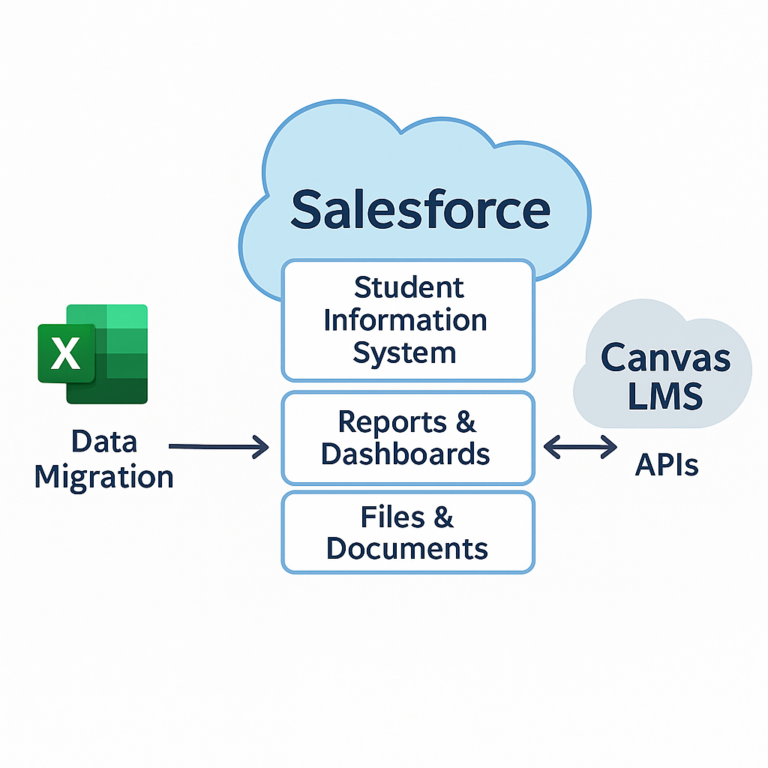 This project represents Phase Two of the development completed in the 2025 E4C Fellowship, which involved the design and development of the integrated Student Information System (SIS) on the Salesforce Platform. In 2025, Phase One concluded with the production of an initial model which is functional in its current state. This project will develop additional features and functions to be identified and developed during the current data migration phase.