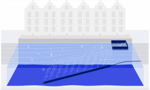 The Bubble Barrier prevents plastic pollution by creating a bubble screen within the waterway. This is achieved by placing the tube (with holes) along the bottom of the waterway and pumping air through a tube.