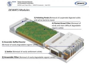 A Decentralised Wastewater System (DEWATS) refers to a decentralized, community-level wastewater treatment technology.