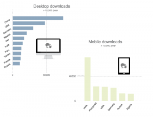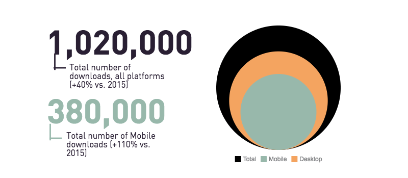 More than one million downloads according to the Kiwix Annual Report 2016.