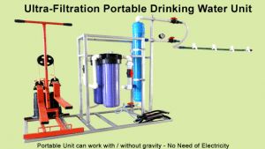 Tech-Jal is a water purifier that can produce 500-2000 L/hr of drinking water per hour. The filter utilizes a polypropylene pre-filter, an activated carbon pre-filter, and a hollow-fibre membrane. The unit is developed by Technorbital company which is based in India. It removes all viruses and bacteria from the raw water causing diseases like Jaundice, Polio, Diarrhea, Cholera, Typhoid, and Dysentery. Moreover, it is eco-friendly and operates without electricity.